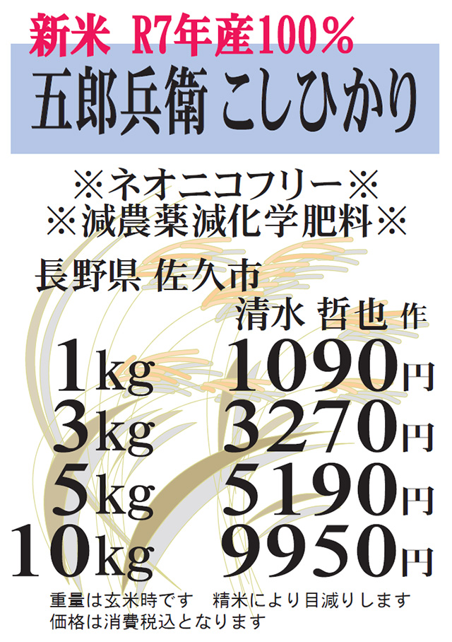 ◆R7年産 長野 五郎兵衛 こしひかり◆