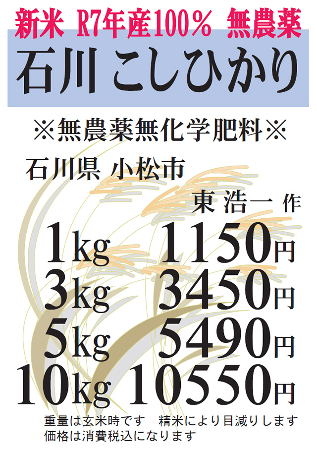 ◆R7年産 石川 こしひかり◆