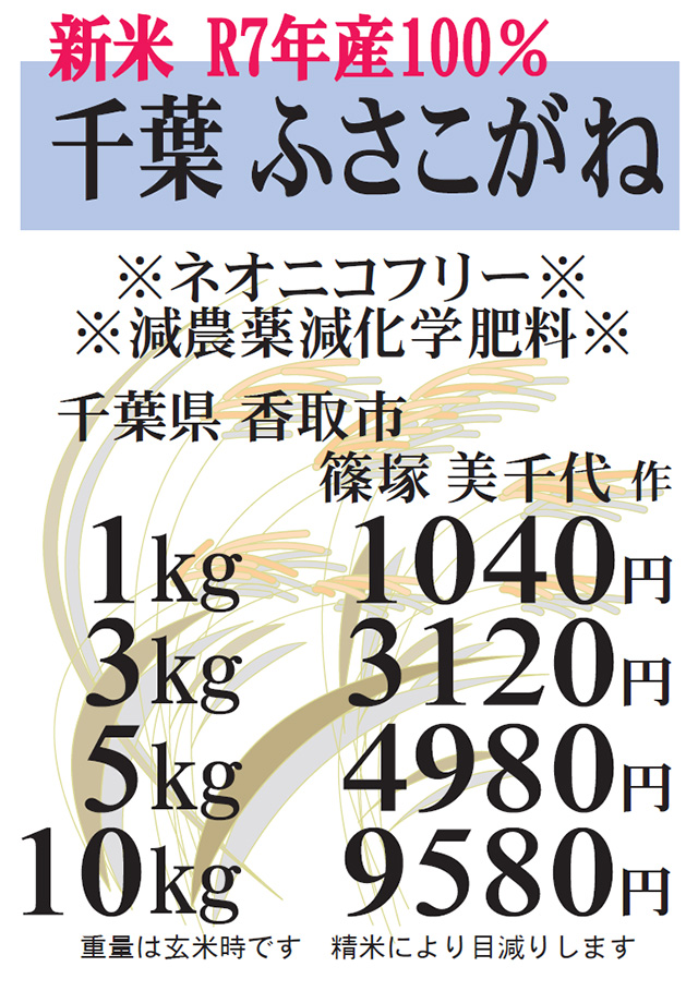 またお米は、全て減農薬減化学肥料、ネオニコチノイド系農薬不使用のものを揃えておりますので、玄米食の方や分づき米をお探しの方も是非お越し下さい。お待ちしております